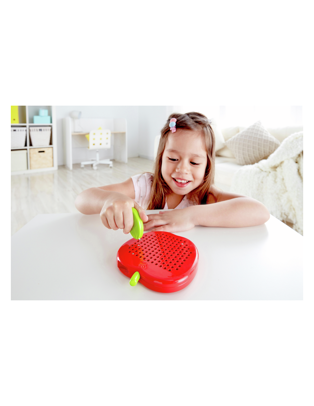Esta tabla es una monada, es magnética y tiene forma de manzana. Con ella, los pequeños de la casa se podrán entretener creando bonitas formas con el marcador mágico en forma de hoja. Es muy sencillo de usar, con el marcador deberán dibujar encima de los agujeros y para volver a empezar, solamente tendrán que tocar la bolita.