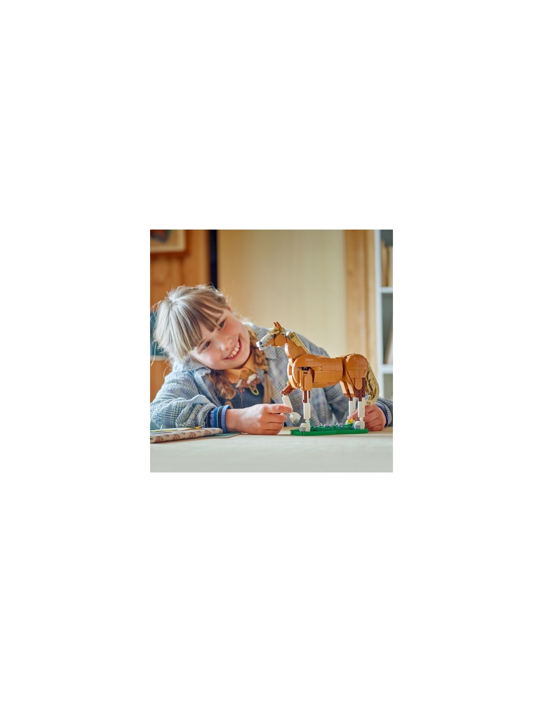Los niños y las niñas disfrutarán de divertidas historias llenas de amor por los animales con el set de construcción Caballo Noble. El caballo de juguete articulado mueve la cabeza, el cuello, la grupa, los tobillos, la cola y una de las rodillas, y viene con una base con efecto de hierba donde los peques podrán exponerlo en 3 posturas: apoyado sobre 3 o 4 patas, o erguido sobre las 2 traseras. Los niños tienen 3 diferentes opciones de construcción con los mismos ladrillos: un caballo LEGO articulado, un oso articulado con un pequeño modelo de una cascada o un elegante ciervo articulado.
