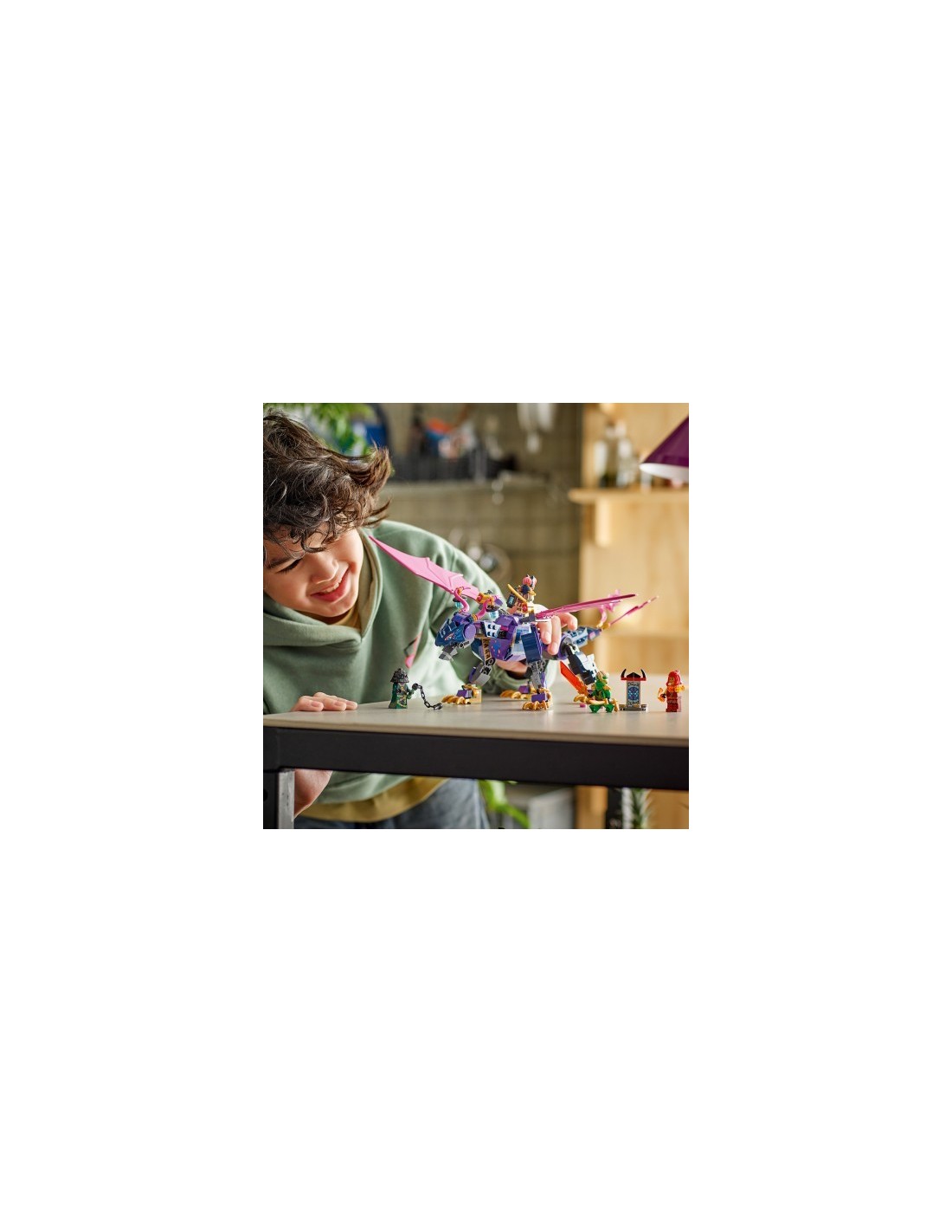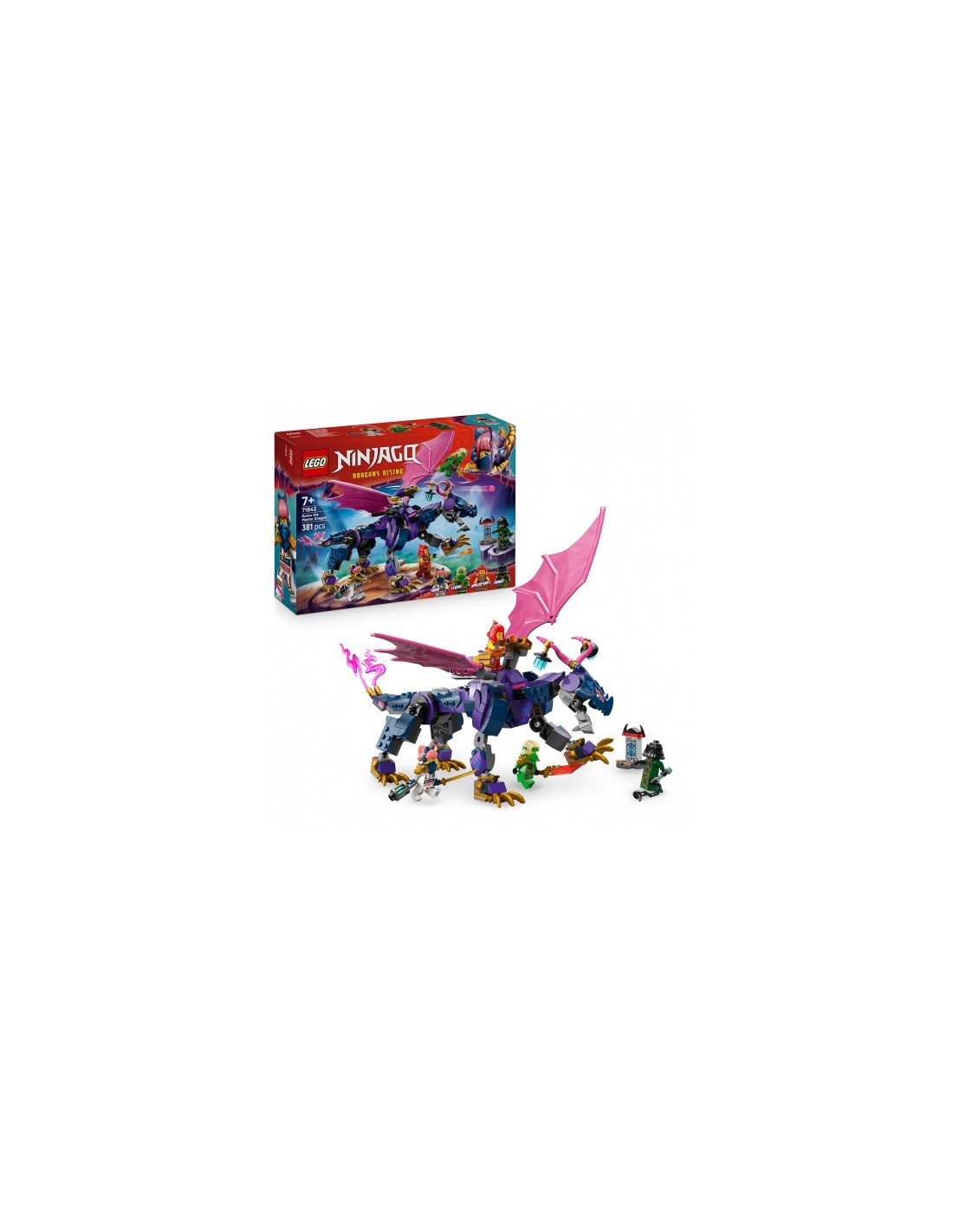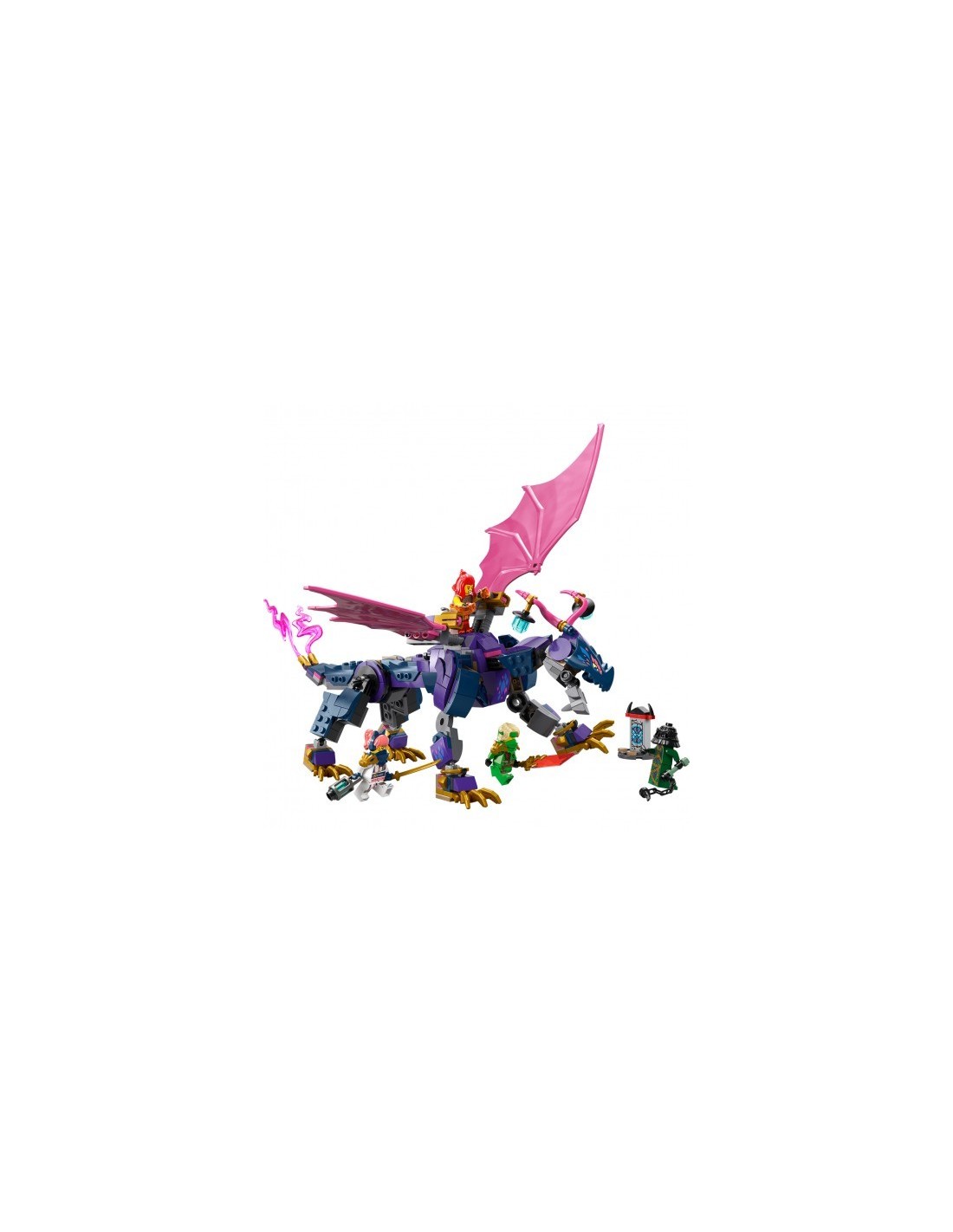 El juguete LEGO NINJAGO Dragón Maestro Rontu para fans de los ninja les permite recrear trepidantes escenas de la temporada 3 de la serie para televisión NINJAGO: El Renacer de los Dragones. Este set de construcción infantil contiene un dragón de juguete con cola, patas, alas, cabeza y mandíbula articuladas, 2 posiciones para colocar una minifigura en el lomo y un cañón que dispara bajo cada ala. El juego LEGO cuenta con 4 minifiguras NINJAGO: los guerreros ninja Lloyd, Sora y Wyldfyre, cada uno con un arma ninja, y Zarkt, el Maestro del Infortunio, para interpretar épicas batallas entre el bien y el ma