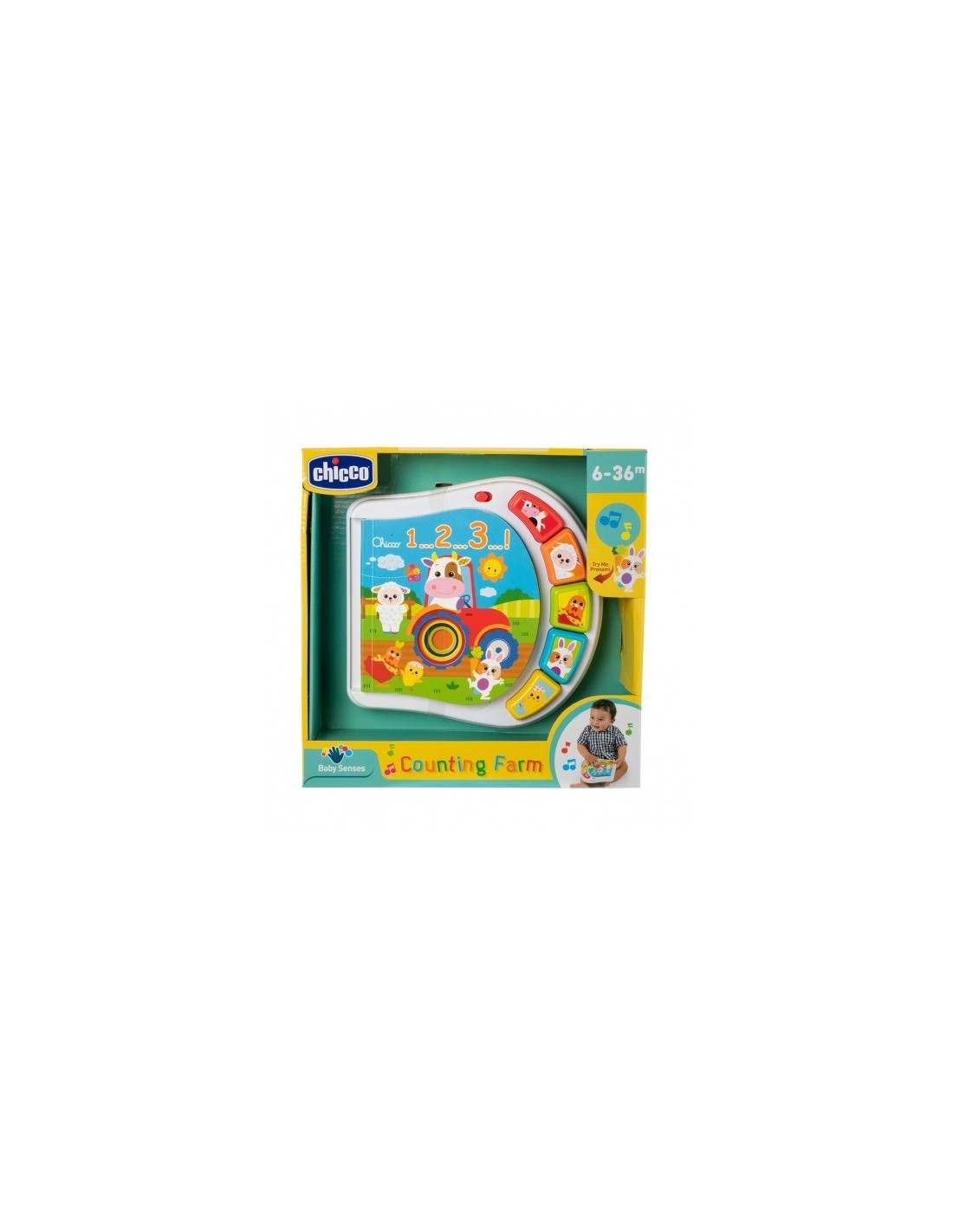 Aprender las formas y los sonidos de los animales nunca ha sido tan fácil. Con base de plástico, botones interactivos y páginas en cartón duro, ideal para bebés y niños/as pequeños. Cada animal que aparece dentro de cada una de las páginas corresponde a un botón que el bebé puede presionar para escuchar el sonido. Con este Libro de los Animales de la Granja los niño y niñas aprenderán los nombres de animales y sonidos de animales, así como los números y las formas. Es fácil de leer gracias a los círculos recortados en las páginas, y es una buena forma de que el bebé pueda comenzar a familiarizarse con libros.