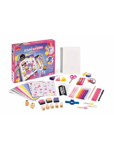 Este kit de actividades creativas permite a los niños descubrir y practicar el scrapbooking mientras se divierten. Con más de 50 accesorios, pueden colorear, recortar, pegar, decorar... lo que quieran: álbumes, fotos, fotografías...