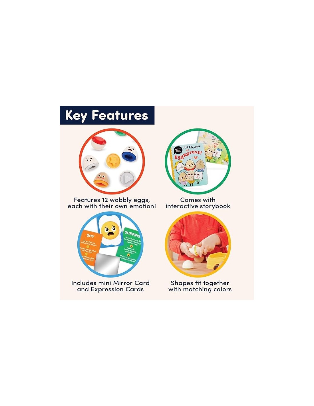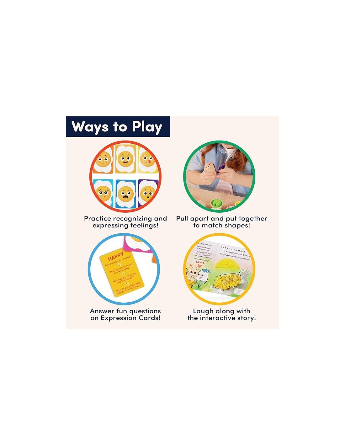- Juego de 39 piezas: combina, aprende, reflexiona y expresa con huevos a juego, tarjetas de expresión, una tarjeta de espejo y un autobús de juguete