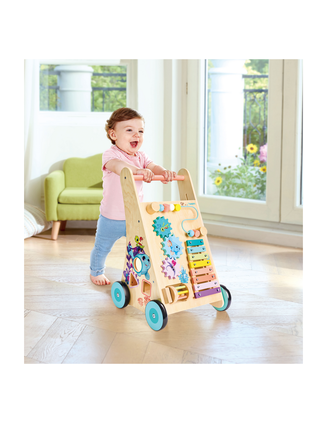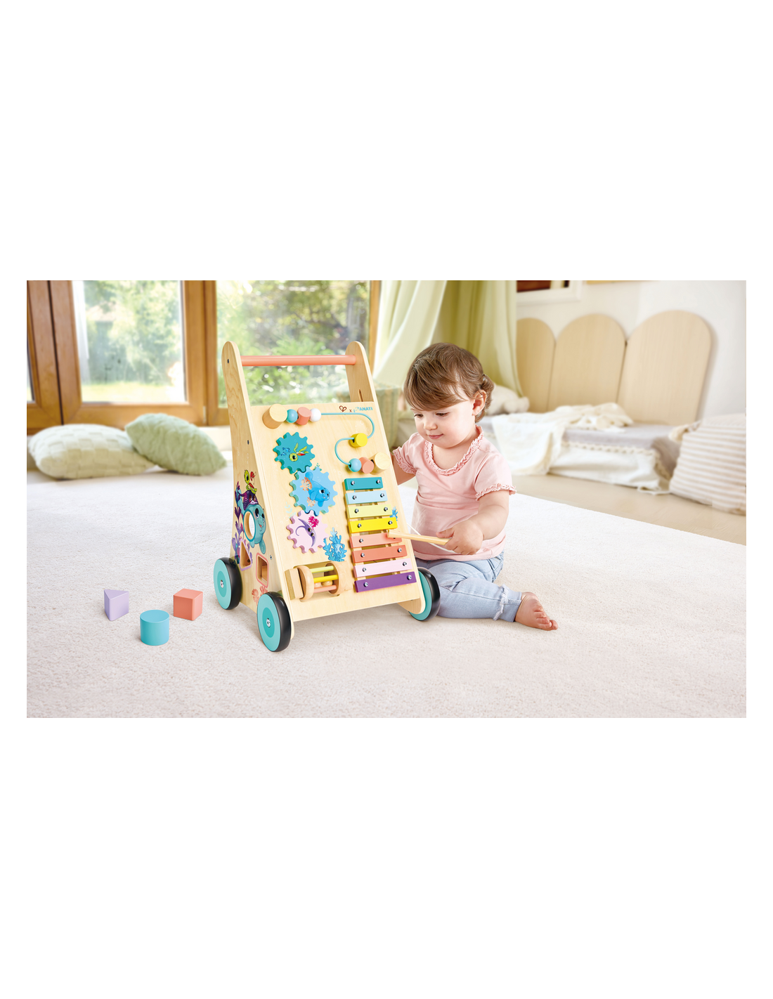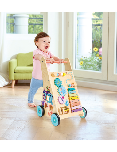 Aprender a caminar es vital para su autonomía y, con este andador, también desarrollarán la motricidad fina. Cuando estén cansados de explorar su entorno, podrán jugar con las 6 actividades que contiene este completo andador para empezar a descubrir las leyes básicas de la mecánica y la física. Tienen muchos juegos y actividades para elegir: un looping, engranajes, un xilófono, tres encajables y un circuito vertical. ¡Se lo pasarán en grande jugando sin parar!