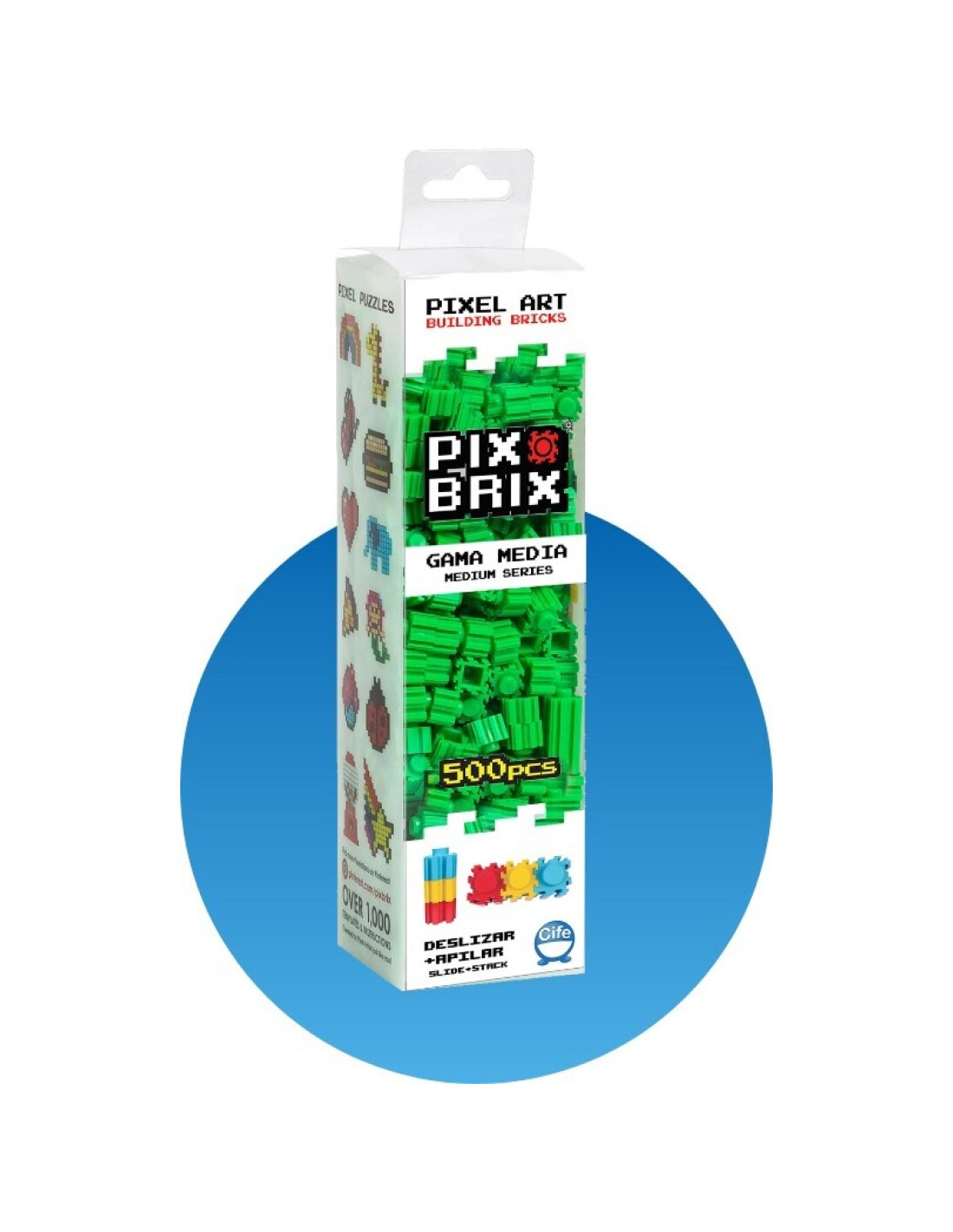 “Utiliza estas 500 piezas Pix Brix para dar rienda suelta a tu imaginación, combínalas con otro colores y realiza puzzles y construcciones increibles en 2D y también en 3D.”