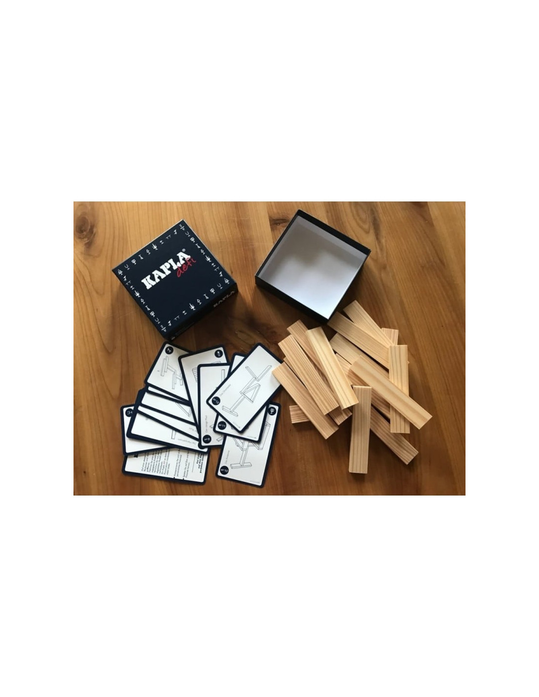 - El Desafío KAPLA es una búsqueda del equilibrio perfecto … Intente reproducir los modelos que aparecen en cada una de las 12 “Cartas de Desafío”, con las 16 tablas de KAPLA a su disposición. “Tanto el cerebro como las manos entran en juego para lograr la armonía y el equilibrio de la humanidad”.