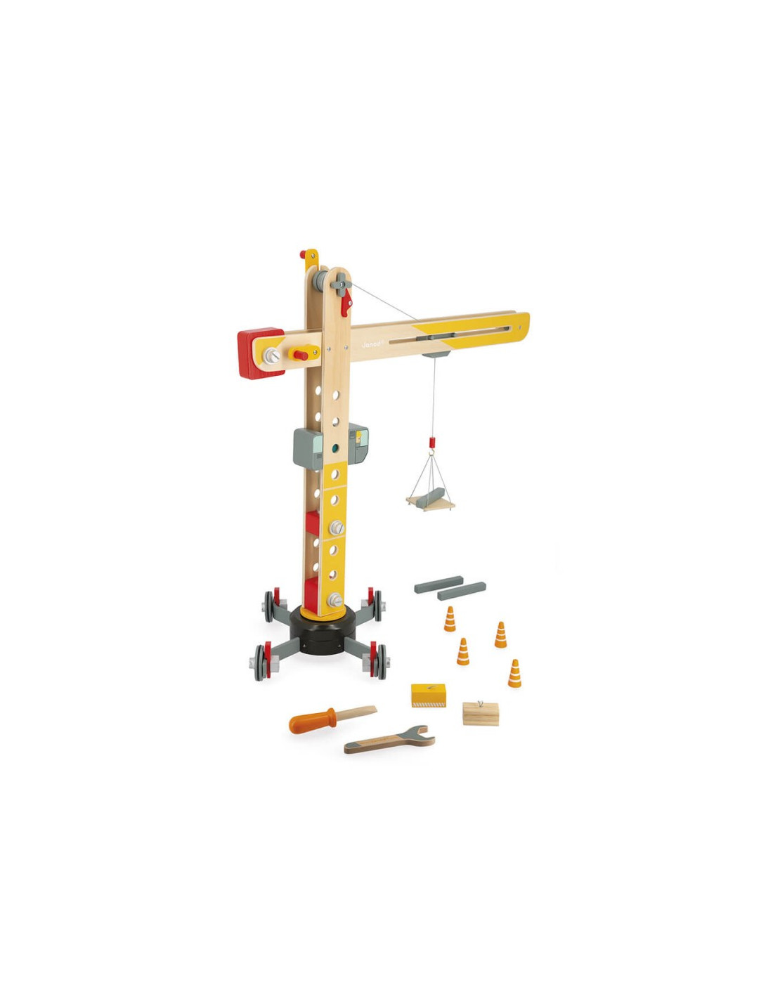 ¿Quién no ha soñado alguna vez con construir las casas más bonitas, los puentes más largos… y sumergirse en el corazón de las obras más grandes? Es el momento de tomar las riendas de esta fantástica grúa de madera. Fácil de manejar, ofrece una rotación de 360°, una cabina que sube y baja y un cabrestante que se mueve hacia delante y hacia atrás. La carga se puede manejar de arriba a abajo y de delante a atrás con sus 2 manivelas. Además, un ingenioso sistema permite detener la caída de la carga si esta es demasiado pesada. ¡La grúa es móvil (ruedas silenciosas) y tiene un sistema de estabilización como los de verdad! ¡Para pasar horas jugando con perspectiva!