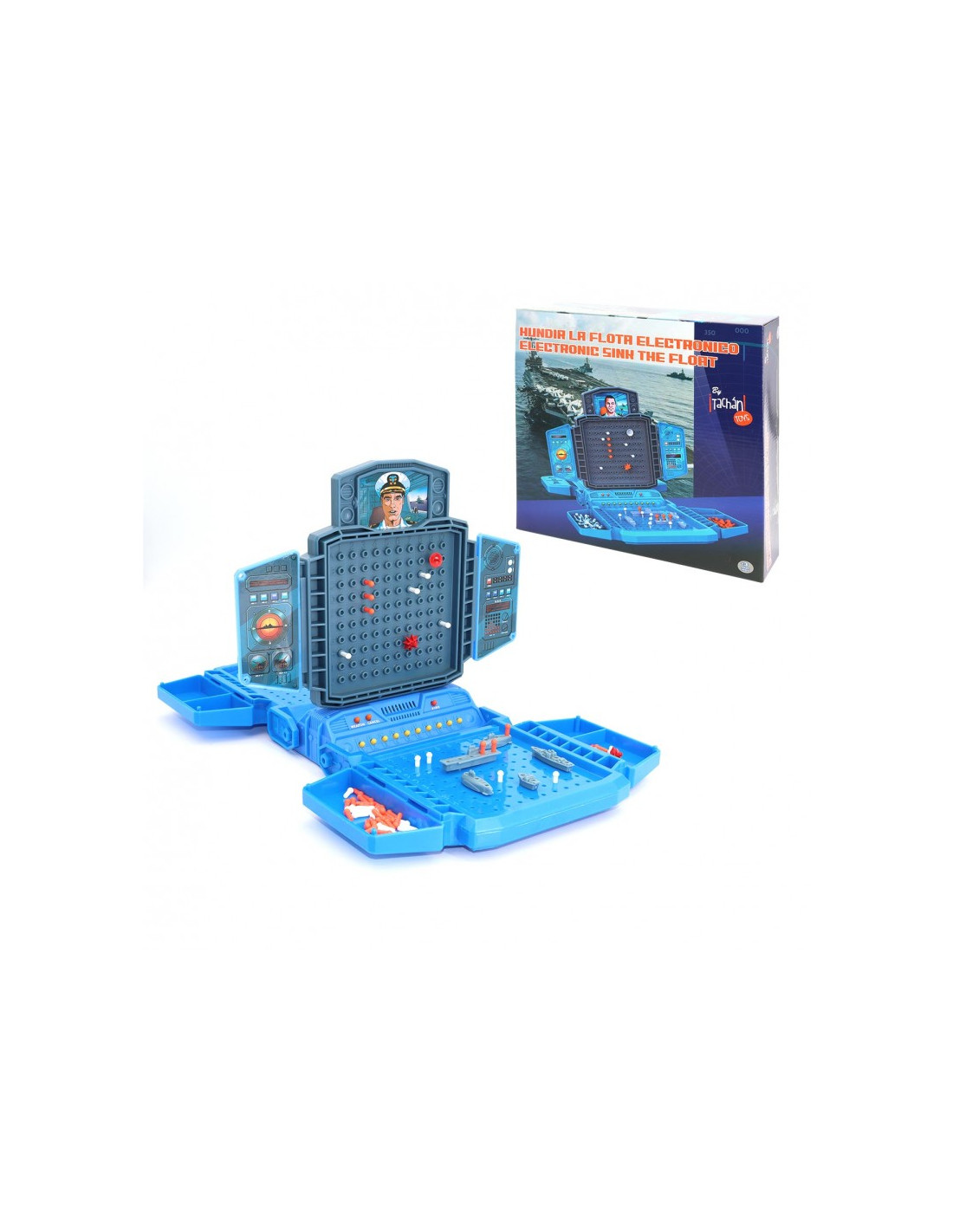 Juego de acción: ¿Cómo se juega? Es un juego de mesa que consiste en acabar con la flota de barcos enemiga. Ambos jugadores dispondrán de 2 cuadriculas; una donde se colocará la flota y la segunda con las anotaciones. Con estrategia e ingenio, los contrincantes trataran de hundir la armada de su adversario, esperando un turno para disparar a los barcos enemigos. Gana quien derribe primero la flotilla contraria. Este juego pone a prueba la destreza mental, además, ayuda al desarrollo cognitivo de la percepción espacial.