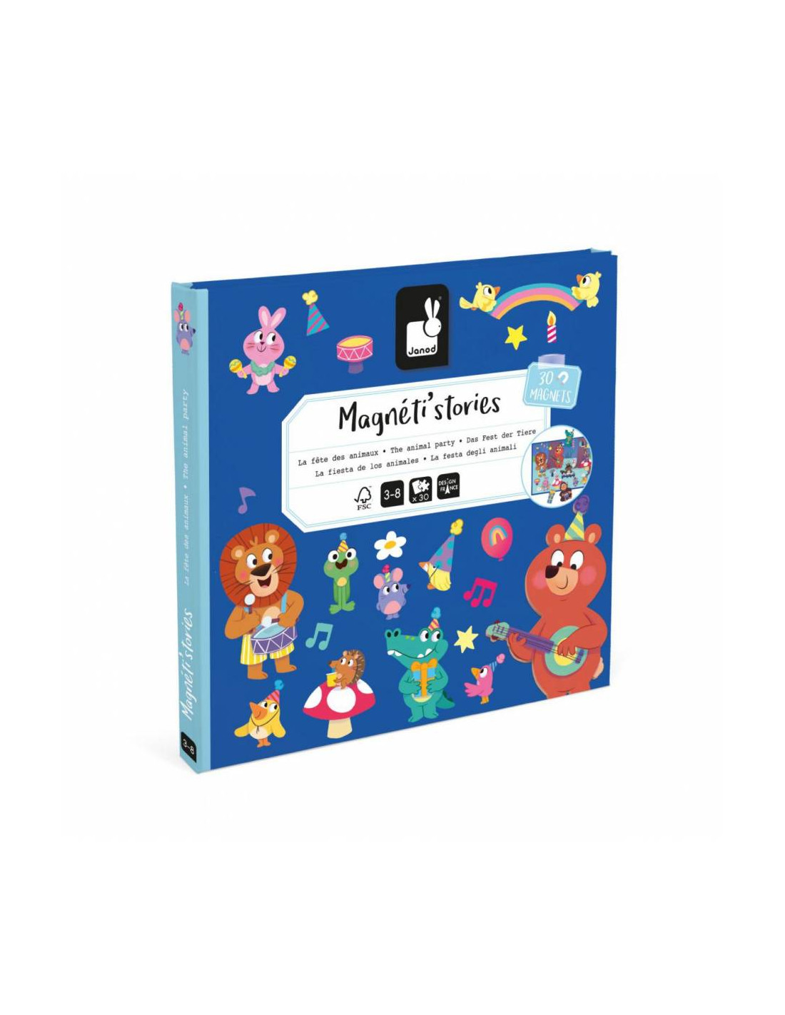 ¡Ven, corre! Acaba de caer la noche en el bosque y hay una gran sorpresa. Este juego magnético sorprenderá a los niños a partir de 3 años. Este decorado ilustrado estimulará la imaginación y la motricidad fina del pequeño. Este juego magnético consta de un tablero decorado grande y 30 imanes. ¡Los imanes, una vez colocados en el festivo panorama, serán el punto de partida de un montón de maravillosas historias! ¡Han venido los animales y hay una tarta con una vela en el centro cuando empieza a sonar la música! Pero, a todo esto, ¿de quién es el cumpleaños? Será el niño quien lo decida. Este gran decorado es plegable y, por lo tanto, el pequeño lo puede guardar fácilmente o llevarlo en la mochila. Así, en cualquier momento podrá inventarse multitud de historietas mientras estimula su motricidad fina manipulando las piezas magnéticas. Una vez que los elementos estén en su sitio ¡solo tiene que poner la escena en vertical y contarle la historia a su público! Este juego magnético forma parte de la gran colección de Magnéti'stories, invitaciones a la ensoñación y a la imaginación