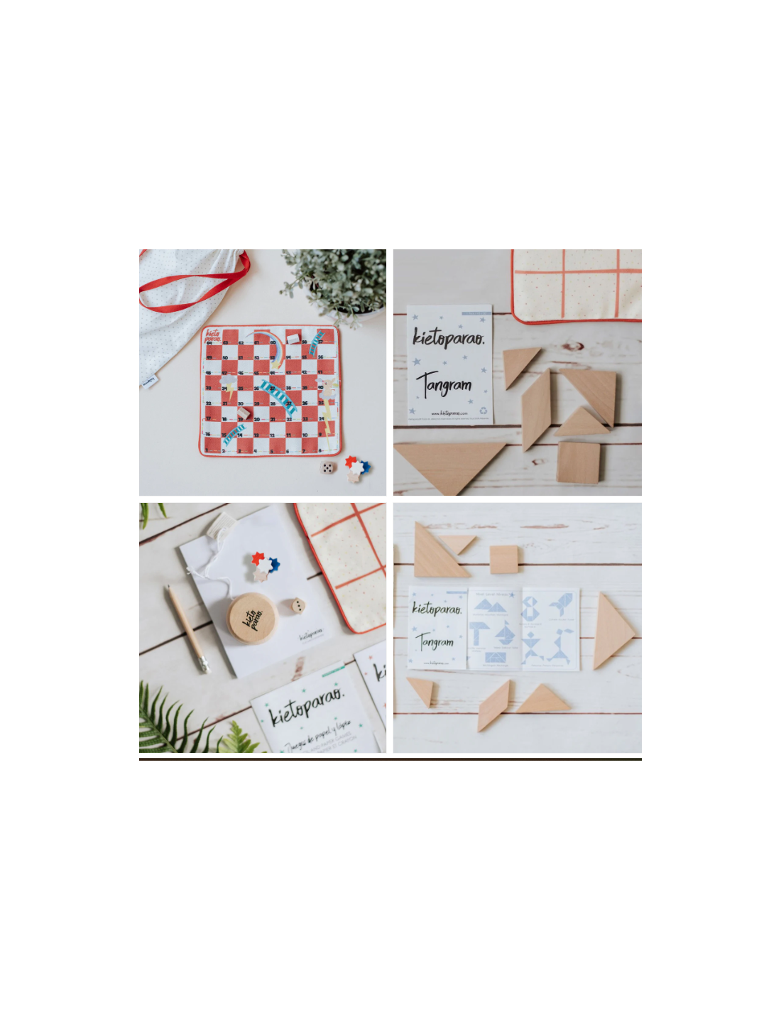 - Un precioso tangram de madera y una guía, por niveles, para crear un montón de figuras. \n